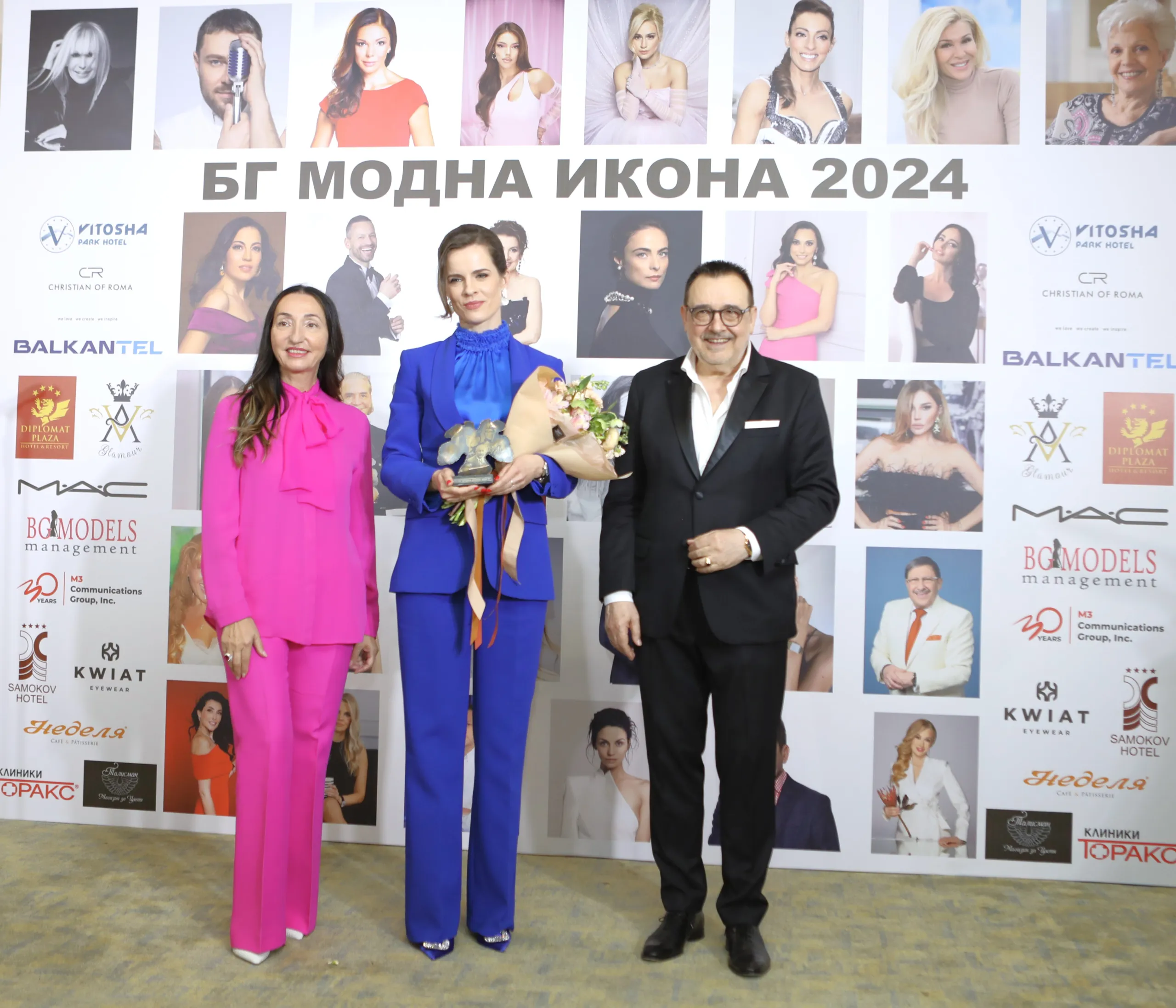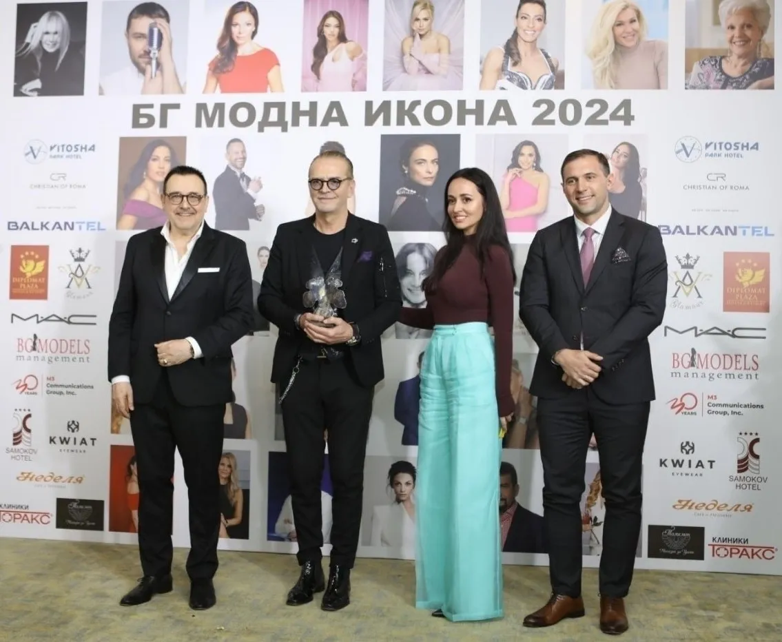 На изискана церемония във Витоша Парк хотел бяха връчени Годишните награди на Академията за мода за успех и стил „БГ модна икона 2024”. Финансистът и председател на Управителния съвет на Сдружение „Дамски форум“ Диана Митева получи приза в категория „Бизнес“, топмоделът и водеща на предаването „Съдебен спор“ по Нова телевизия Ромина Андонова-Тасевска в категория „Телевизия“, художественият директор на One Gallery и международен арт консултант Десислава Зафирова в категория „Артмениджмънт“. За втори път актьорът, режисьор и продуцент Ники Сотиров взе наградата в категория „Изкуство“. В същата категория статуетката беше присъдена и на артиста и продуцент Стефан А. Щерев. В категория „Медии и журналистика“ призът отиде при двама от най-изявените ни журналисти – създателя и водещия на предаването „120 минути“ по bTV Светослав Иванов и журналистката, и водеща на ТВ предаване „Събуди се“ по Нова телевизия Марина Цекова. Според традицията на Академията за мода, критериите известни български личности да получат статут на БГ модна икона, са качества и добродетели като високи професионални постижения, безупречна култура, морал и репутация, изискан и модерен вкус и стил.