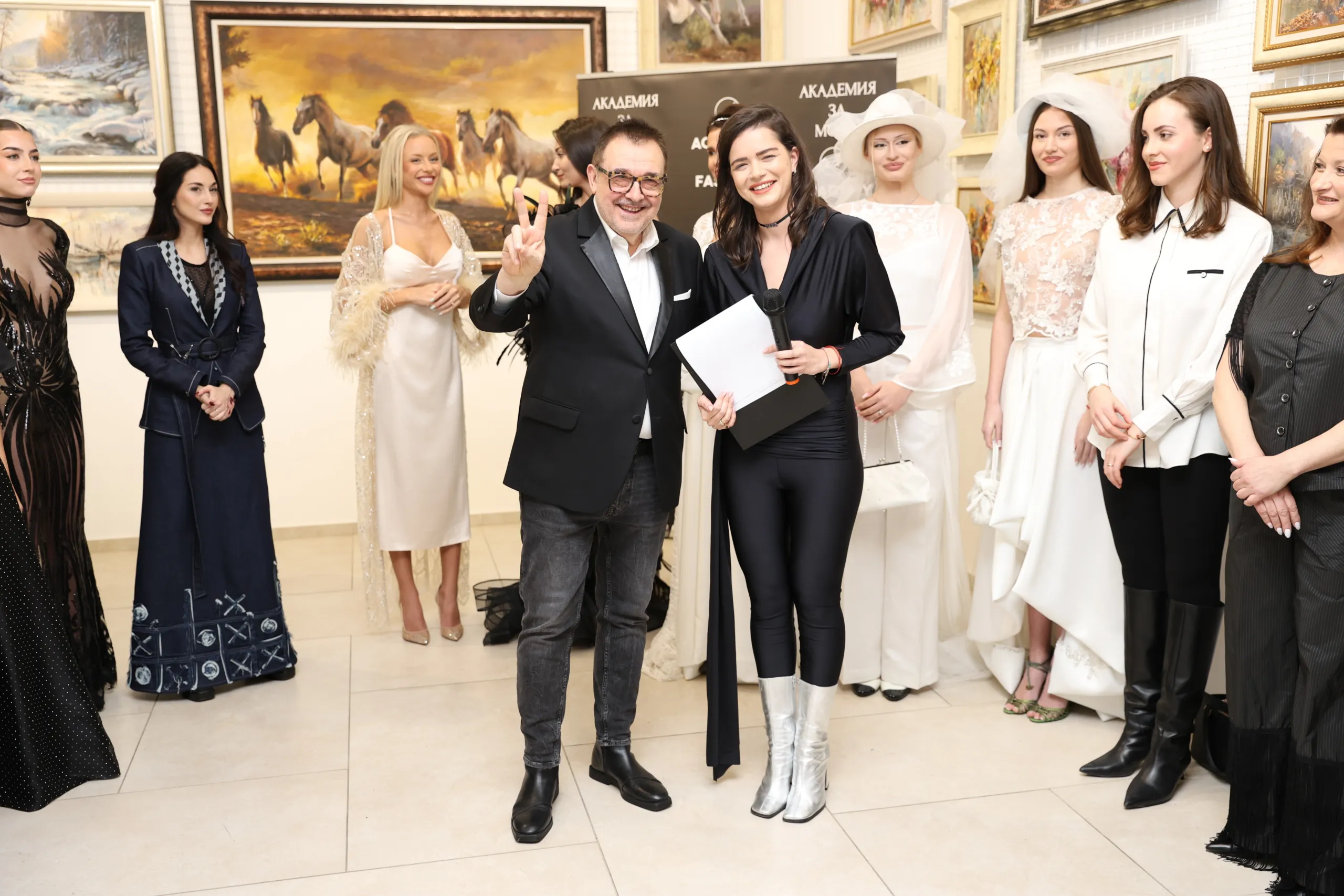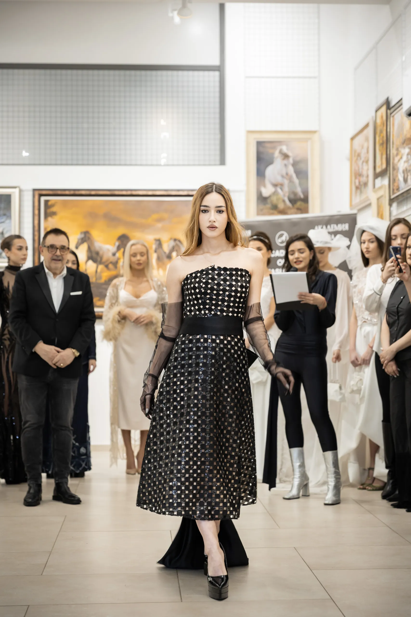 Модното ревю започна с Ивет Бианки – носител на „Изгряваща звезда 2025“ в категория „Международни успехи“ и носител на „Златна игла 2024“ в категория „Най-добър млад дизайнер“. Тя презентира тоалет, част от колекцията „Романс, написан в черно и бяло“. Вдъхновението идва от философията на Кристиан Диор и неговия New Look – визия, която възвръща романтиката, мекотата и достойнството на женската форма.