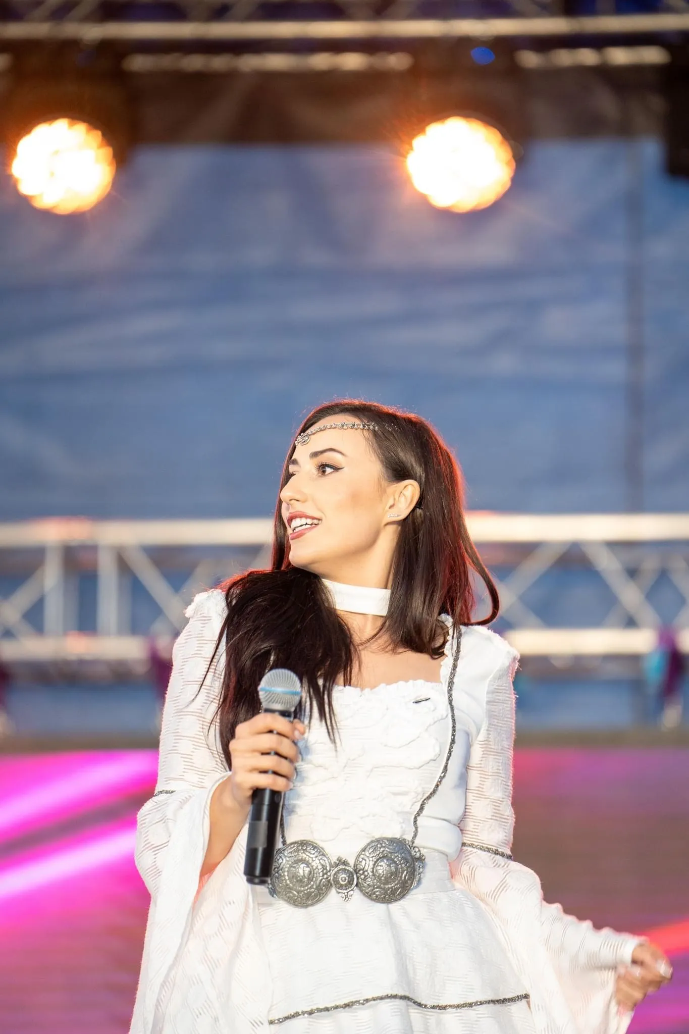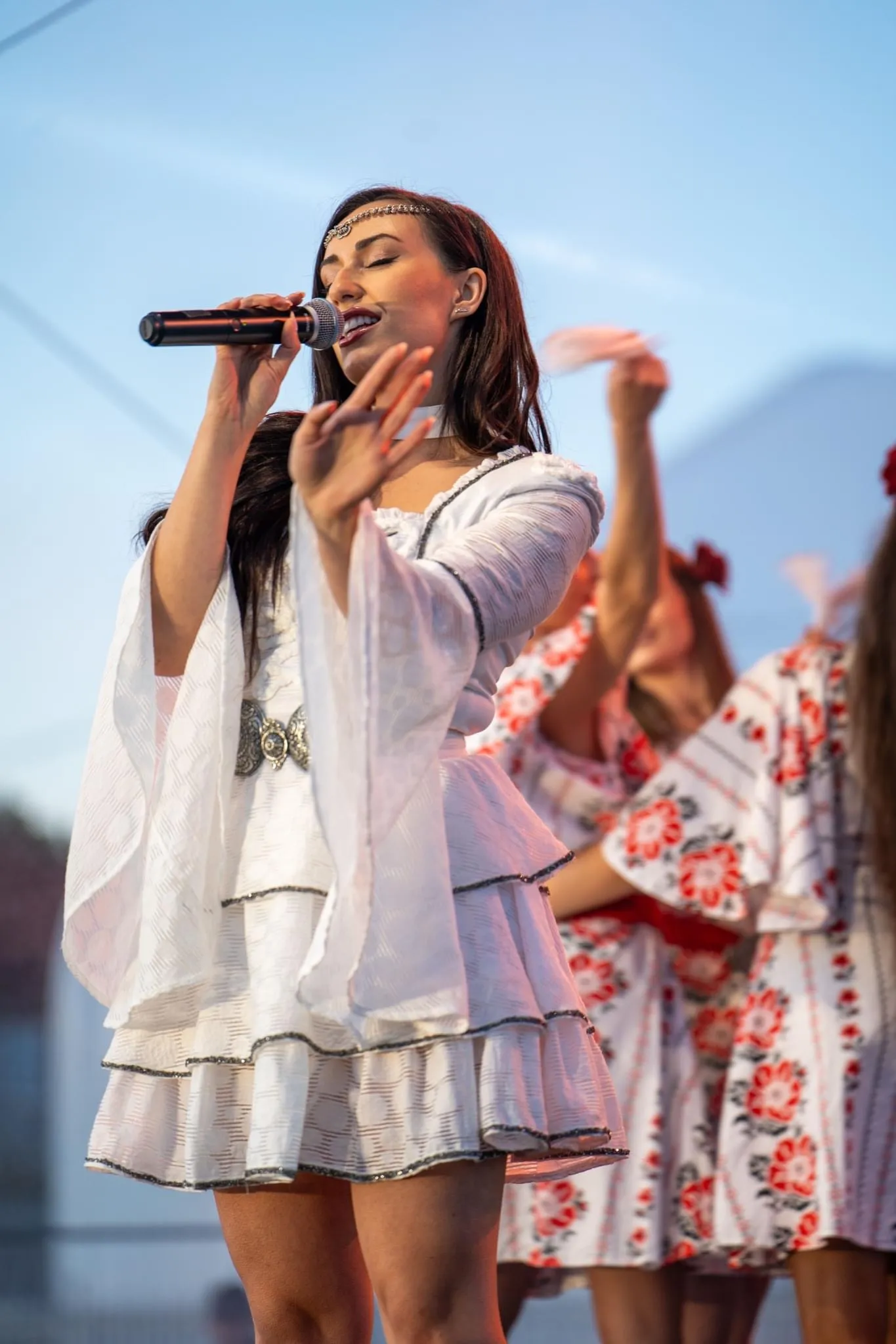 Дуетът откри концерта с впечатляваща енергия, като съчета модерно звучене с български фолклорни мотиви. Изключителната им харизма беше подчертана и от сценичните костюми – роклите „Дивна“, които събраха погледите на присъстващите. Изработени от нежна дантела и украсени със стотици блестящи камъчета. Обемните ръкави и ръчно преплетените шевици добавиха нотка на автентичност, допълвайки перфектно модерния прочит на фолклора.