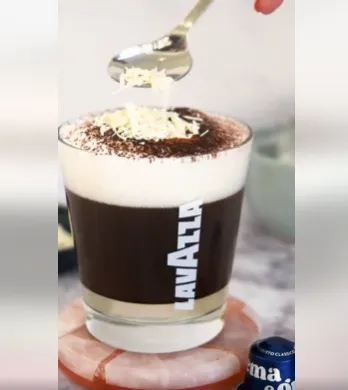 Следващият кафе коктейл е студена бяла мока с Lavazza. Сладостта на белия шоколад се слива с перфектно изпеченото еспресо в балансиран вкус. Изкушаващата напитка е подходяща за лежерните следобедни дни.