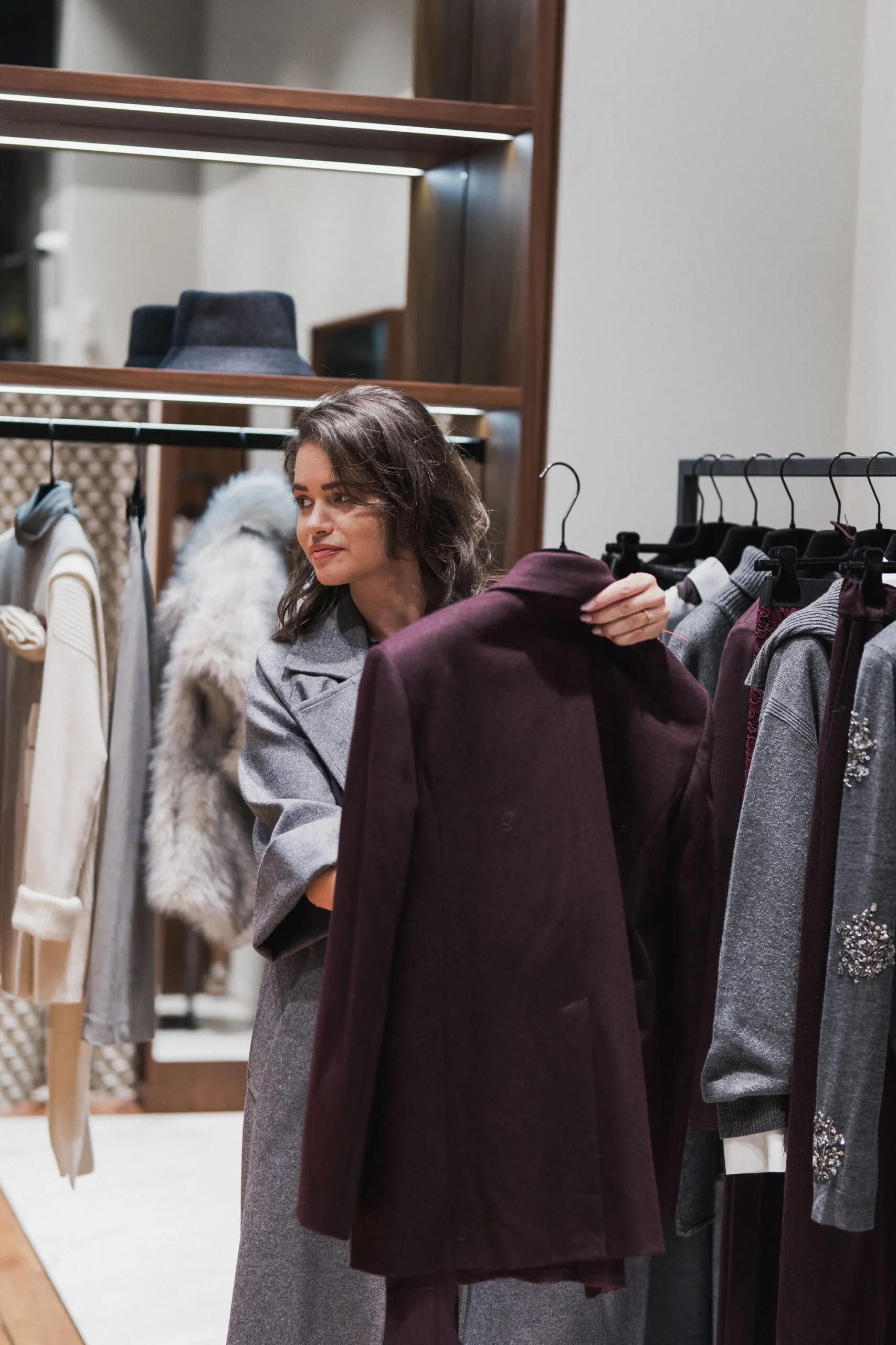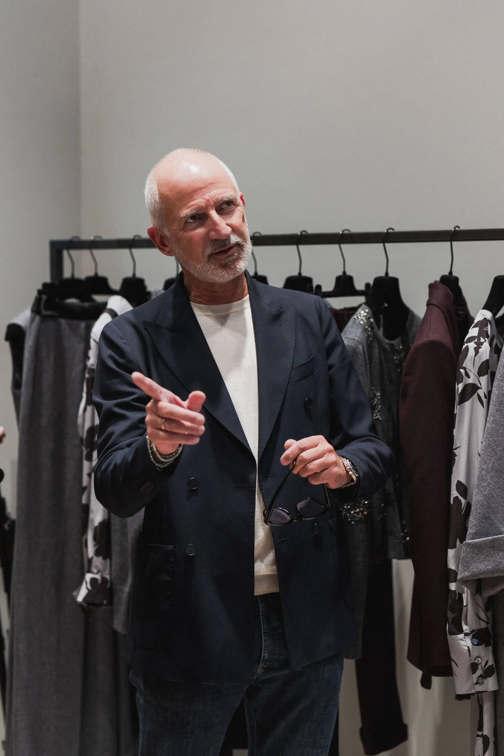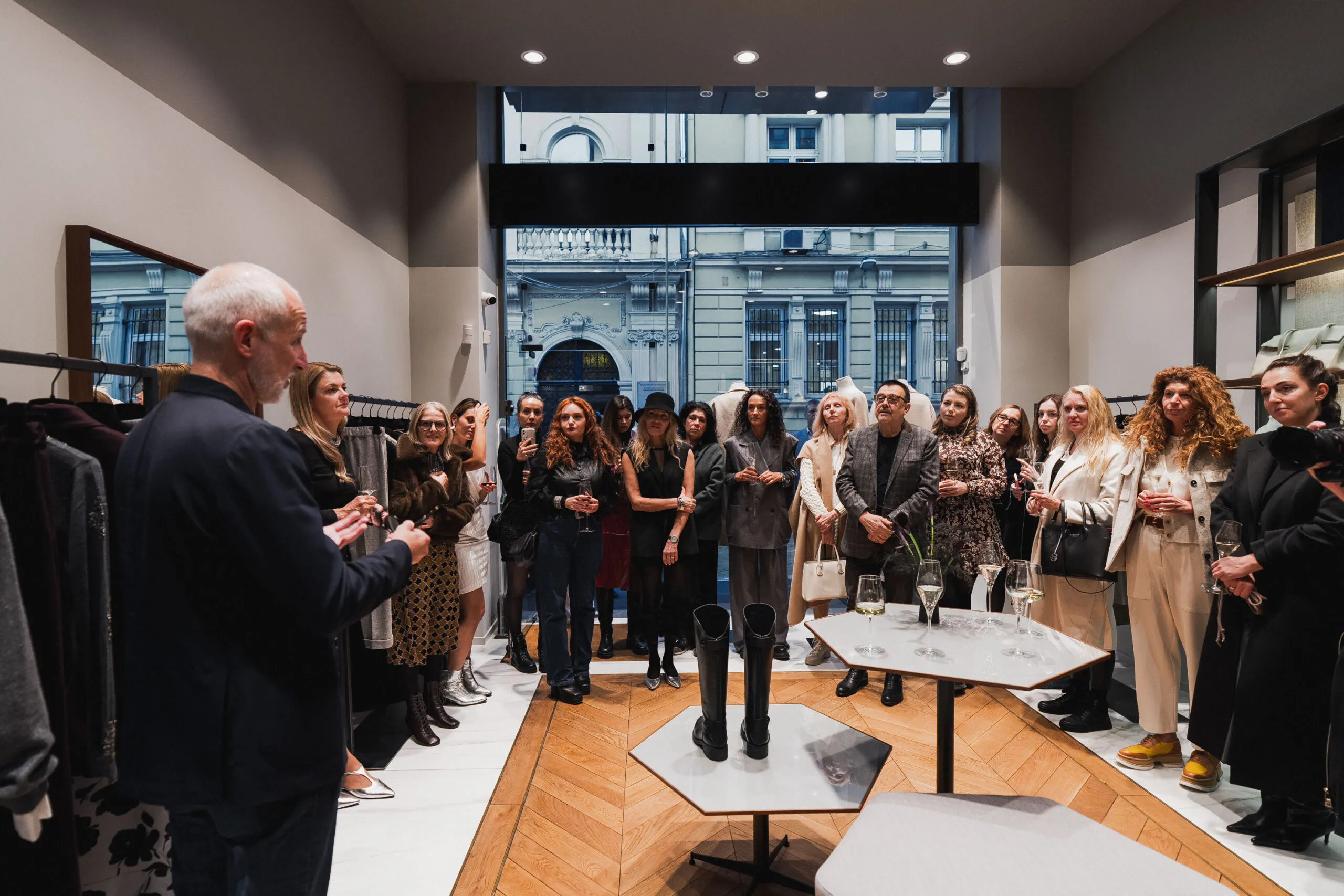 Колекцията се разгръща в хармоничен поток: една единствена визуална история, в която всяко модел е създадено да заяви тихо, но впечатляващо присъствие. Силиуетите са ясни, обемите – обгръщащи, а материалите – внимателно подбрани, за да предизвикат тактилни усещания: двойно опашана вълна, техничен джърси, скулптурни плетени изделия и подплатени повърхности се редуват в умерена игра на пълнота и празнота.
