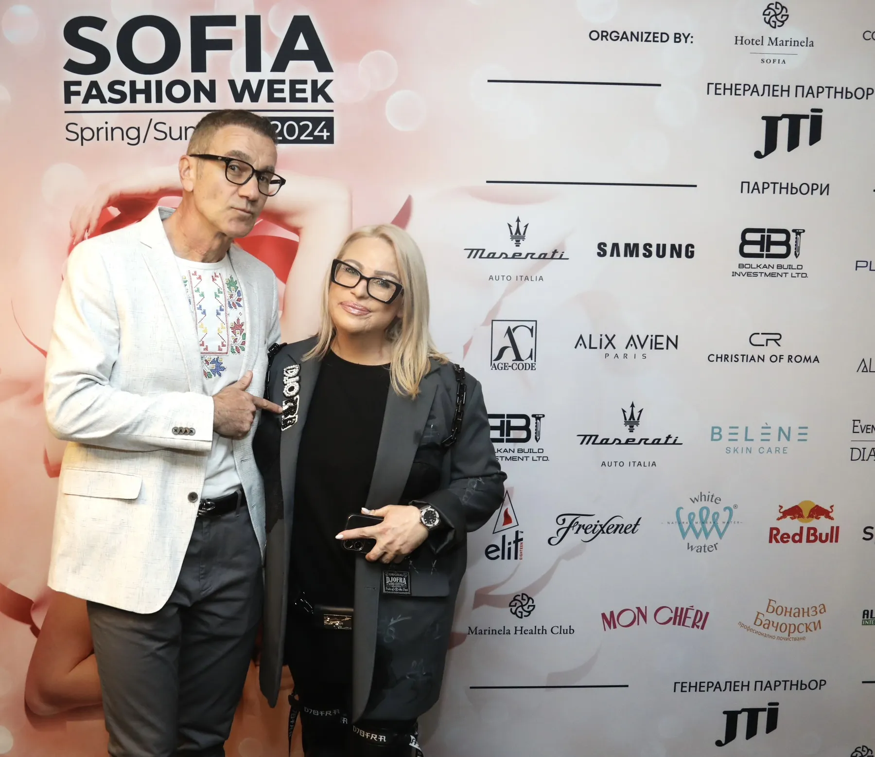 Генерален партньор на събитието е Japan Tobacco International. Брандовете, които подкрепят Sofia Fashion Week SS 2024 са Maserati AutoItalia, Samsung, Bolkan Build Investment LTD, Plavai.BG, BELENE, новата премиум козметика от Age Code, Alix Avien, които ще се погрижат за грима на моделите, Christian of Roma, които ще се погрижат за прическите на моделите, премиум аромати от Al-Amar, Spetema, Katarzyna Estate, Elit, Freixenet, RedBull, White Water, KFC, които се грижат за храната на моделите през трите дни на събитието. Специални благодарности на Events Décor Diamanti, Marinela Health Club, Mon Cherí, Бонанза-Бачорски.