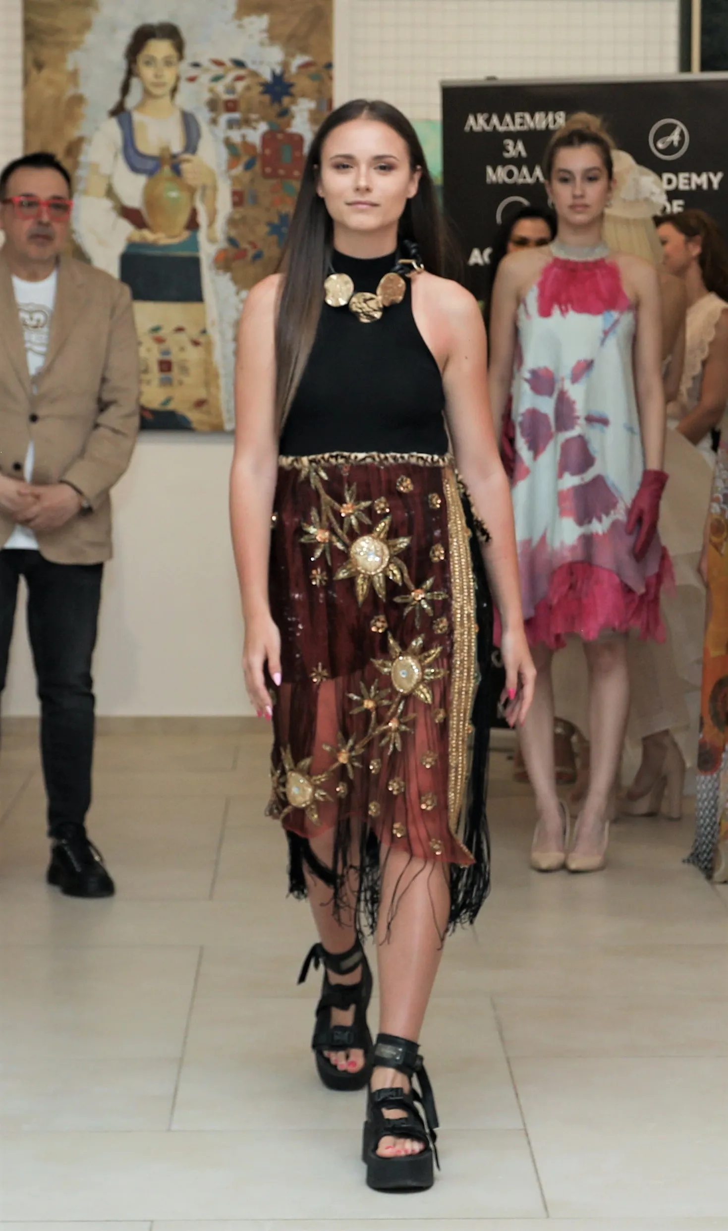 Модният бранд Margo Moda, с дизайнер Маргарита Петева, показа три аутфита, посветени на темата. Първият тоалет бе елегантна черна туника с ресни, към която е добавен елемент от индийско сари, а второто произведение беше черна рокля с тюл, завършено с къси червени велурени панталони. Третият аутфит бе еластична рокля, чийто акцентът пада върху невидима ръка в ръкавица.