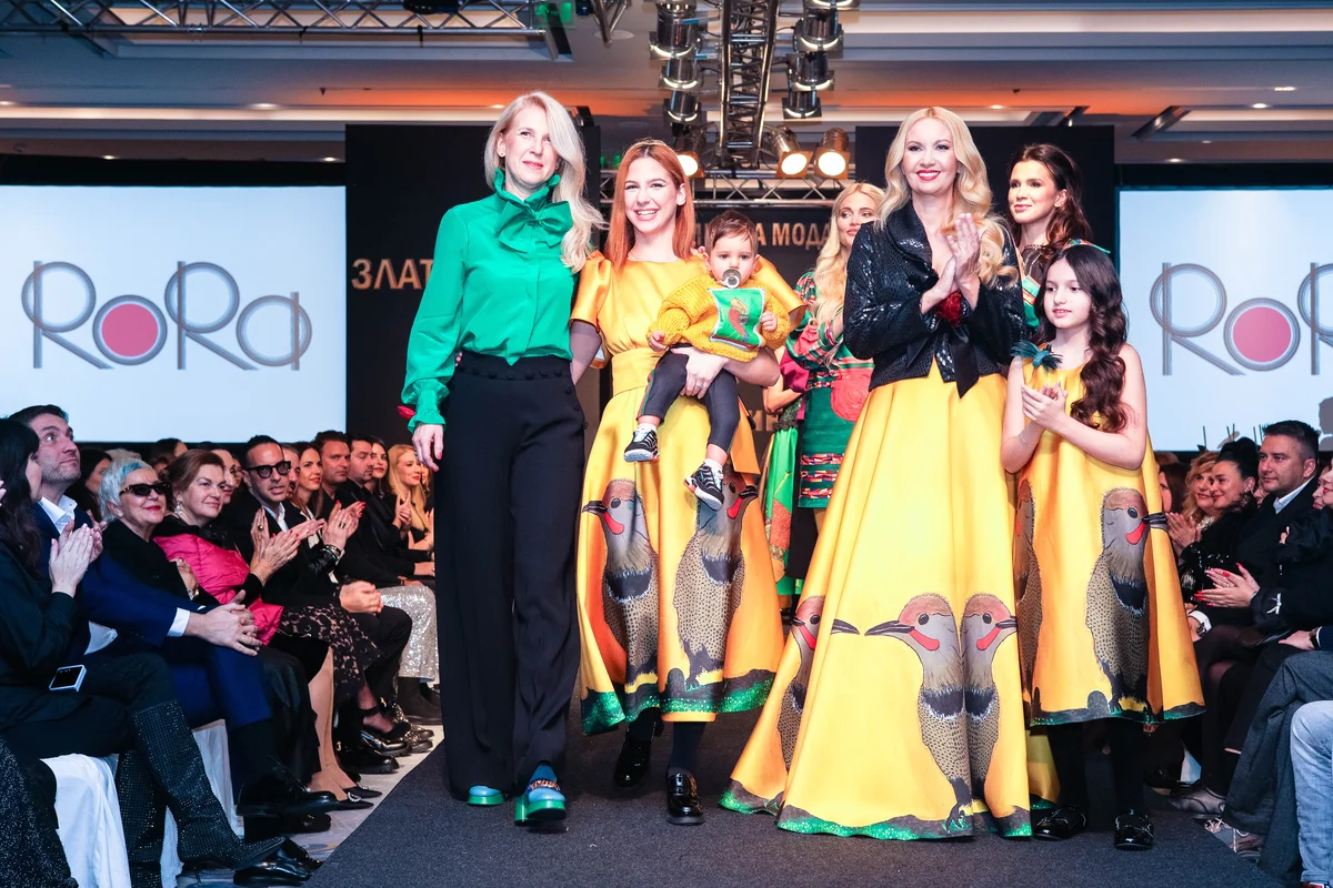 Носителката на „Златна игла“ – д-р Росица Рангелова, откри гала спектакъла на Академията за мода, като представи най-новата колекция на RoRa – „Птици“. Дъщеря ѝ Йоана Рангелова, която миналата година показа дреха за бременни, дефилира със сина си на ръце, а лицето на колекцията Йордана Димитрова дефилира заедно с дъщеря си Каролина. Дизайнерката д-р Росица Рангелова получи грамота на Академията за мода за „За заслуги към детската мода в България“.