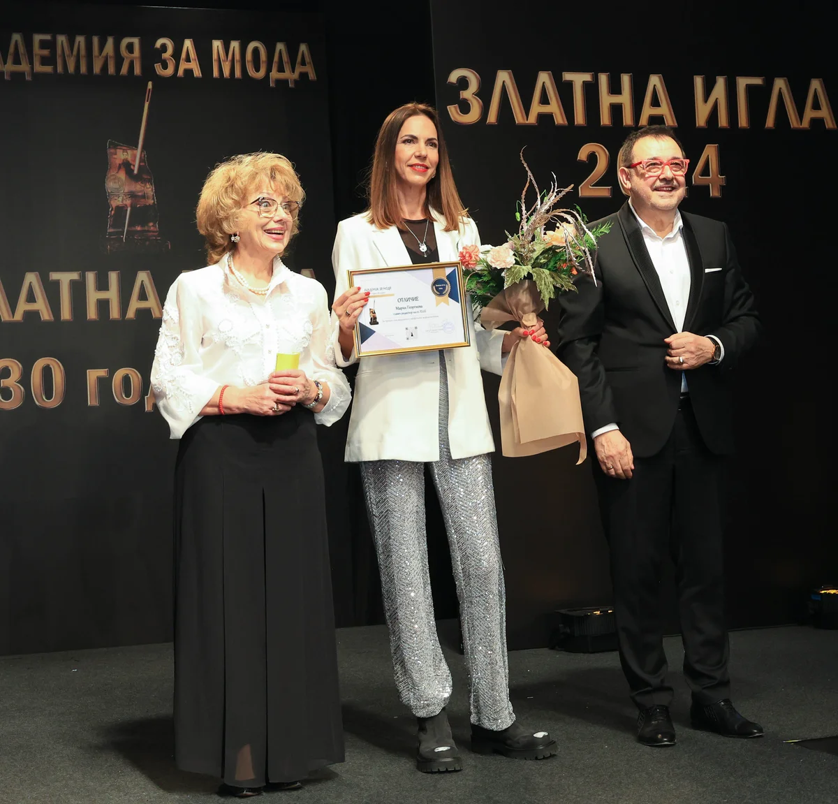 Водеща на бляскавото събитие бе Гери Дончева Янков, която сияеше в рокли на Поля Кинова и Стоян Радичев. Лицето на тазгодишните награди „Златна игла“ – Антоанета Боянова, откри официално вечерта с индивидуално дефиле, облечена в тоалет на Светослав Колчагов – двукратен носител на „Златна игла“.
